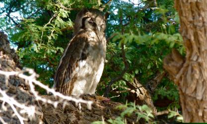 Le grand-duc de Verreaux est un oiseau nocturne qui se repose le jour dans de grands arbres. Il dort peu et se réveille très rapidement pour se défendre contre une attaque en plein jour.