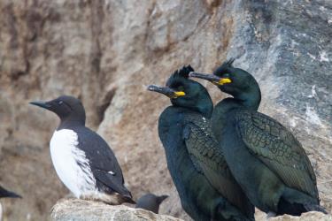 Îlots rocheux et côtes à falaises constituent l'habitat de prédilection du cormoran huppé