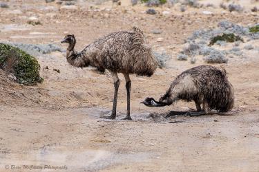 Pendant la journée, y compris en été, les émeus se nourrissent dans des espaces découverts, ce qui implique qu’ils ont besoin de beaucoup d’eau et qu’ils boivent fréquemment. Toutefois, les émeus ont une importante capacité de résistance au manque d'eau.