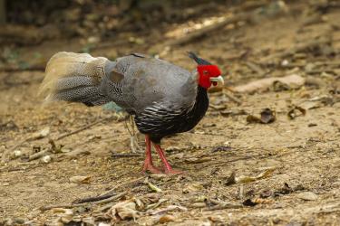 Le Faisan leucomèle est omnivore, consommant principalement termites et nourriture d'origine végétale.