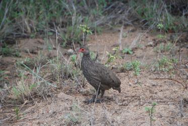 Le régime alimentaire comprend des bulbes, tubercules, racines, baies, grains de céréales, feuilles d’herbe et pousses de maïs (del Hoyo et al. 1994). Au Transvaal, une analyse de contenus stomacaux a révélé 30 % de céréales (maïs, blé, haricot), 25 % de graines de plantes indigènes, surtout de plantes herbacées des genres Urochloa, Eleusine, Panicum, Digitaria, Juncus, Concurus, 14 % de racines et de bulbes dont, de façon prédominante, le genre Cyperus, 7 % d’arthropodes et 2 % de feuilles vertes. En été les arthropodes représentent jusqu’à 20 % du poids total, en hiver et au printemps les grains cultivés sont dominants (Urban et al. 1986).