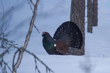 Le Grand Tétras (Tetrao urogallus), ou Grand coq de bruyère, est un gros gallinacé vivant en montagne dans les forêts de conifères.