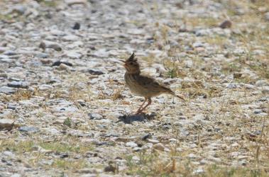 Le Cochevis huppé (Galerida cristata) est une espèce de grosses alouettes, de silhouette ronde et trapue. Sa livrée aux teintes terreuses lui offre une bonne homochromie avec son milieu environnant.