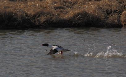 Il apprécie particulièrement les roselières où viennent frayer de nombreux poissons ; son long bec denticulé lui permet d'agripper les poissons.