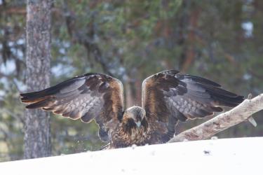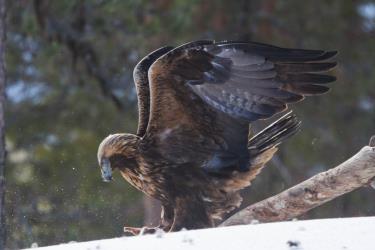 L'Aigle royal (Aquila chrysaetos) est une espèce d'oiseaux de la famille des Accipitridés. C'est un rapace brun foncé, avec un plumage plus brun-doré sur la tête et le cou. L'Aigle royal utilise son agilité, sa vitesse et ses serres extrêmement puissantes pour attraper ses proies : des lapins, des marmottes, des écureuils, et de grands mammifères comme les renards, les chats sauvages et domestiques, de jeunes chèvres de montagne, de jeunes bouquetins, et de jeunes cervidés. Il consomme aussi des charognes, si les proies sont rares, ainsi que des reptiles. Des oiseaux, dont des espèces de grande taille comme des cygnes ou des grues, des corbeaux et des goélands marins ont tous été notés comme proies potentielles.
