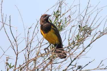 Assez commun et même abondant dans les limites de sa distribution, le Carouge dragon se retrouve dans le nord-est de l’Argentine, en Uruguay et dans l’extrême sud du Brésil.