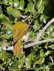 Très curieux et peu craintif, cet oiseau envahit régulièrement les campings à la recherche d'aliments consommables, comme des fruits, des insectes et des restes de confiture, lait ou miel. Les parents nourrissent leurs petits avec des insectes, des fruits et du nectar.
