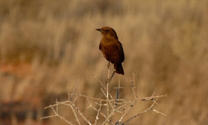 The ant-eating chat or southern anteater-chat (Myrmecocichla formicivora) is a species of bird in the family Muscicapidae. It is found in Botswana, Eswatini, Lesotho, Namibia, South Africa, and Zimbabwe. Its natural habitats are subtropical or tropical dry shrubland and subtropical or tropical dry lowland grassland.