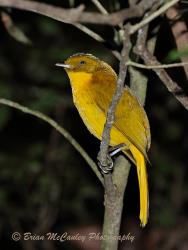 Le mâle a la tête et les ailes brunes alors que le ventre, la queue, le sommet de la tête et la nuque sont jaune d'or. La femelle arbore un plumage plus cryptique.
