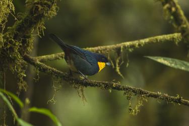 Il vit dans les montagnes humides et les forêts primaires fortement dégradées des régions tropicales et subtropicales.