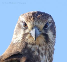 Il diffère des autres faucons par ses ailes plus larges et ses pattes plus longues.