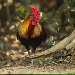 Le coq bankiva habite les forêts, les broussailles et les champs jusqu'à 1500 mètres d'altitude au bord de l'Himalaya.