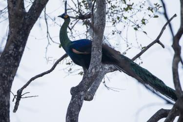 Beebe (1918-22) avait observé que les groupes de paons mènent une vie très sédentaire, se nourrissant à différents endroits de leur territoire mais en gardant toujours les mêmes sites de dortoir et d’abreuvoir. Ils arrivent silencieusement chaque matin à la rivière où ils passent environ une demi-heure à boire et à se lisser les plumes. Cet auteur avait remarqué plus particulièrement un groupe composé d’un mâle, de deux femelles et d’un sub-adulte qui se dirigeait vers un ensemble de termitières pour s’y nourrir, le mâle très circonspect, fermant la marche.