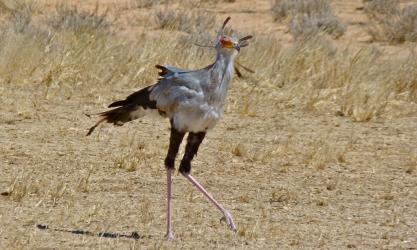 Il passe la majeure partie de la journée à marcher dans la savane et à piétiner le sol et les herbes pour trouver ses proies. Excellent marcheur, il peut parcourir près de 35 km par jour. Pour attraper les prises de taille moyenne ou importante, il les frappe à coups de patte afin de les étourdir ou de les assommer.