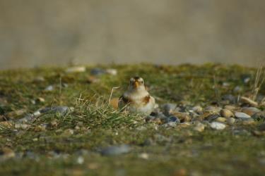 En hiver, le Bruant des neiges est grégaire et forme des groupes mobiles.