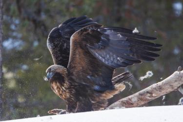 L'Aigle royal (Aquila chrysaetos) est une espèce d'oiseaux de la famille des Accipitridés. C'est un rapace brun foncé, avec un plumage plus brun-doré sur la tête et le cou. L'Aigle royal utilise son agilité, sa vitesse et ses serres extrêmement puissantes pour attraper ses proies : des lapins, des marmottes, des écureuils, et de grands mammifères comme les renards, les chats sauvages et domestiques, de jeunes chèvres de montagne, de jeunes bouquetins, et de jeunes cervidés. Il consomme aussi des charognes, si les proies sont rares, ainsi que des reptiles. Des oiseaux, dont des espèces de grande taille comme des cygnes ou des grues, des corbeaux et des goélands marins ont tous été notés comme proies potentielles.