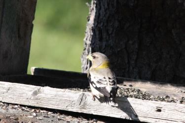 Cet oiseau se nourrit surtout de graines d’arbres feuillus (trembles, frênes, érables, hêtres, ormes) et de conifères (surtout pignons de pins), de bourgeons, de baies, de fruits et de grains. Il récolte aussi de la sève d’érable et capture des insectes et leurs larves, surtout en période de reproduction. Enfin, à la mangeoire, sa préférence va aux graines de tournesol.