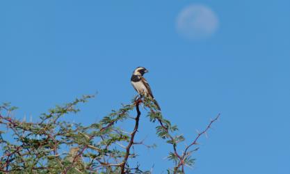 On a observé des cas d'hybridation avec le Moineau domestique, le Moineau sud-africain et le Moineau doré.